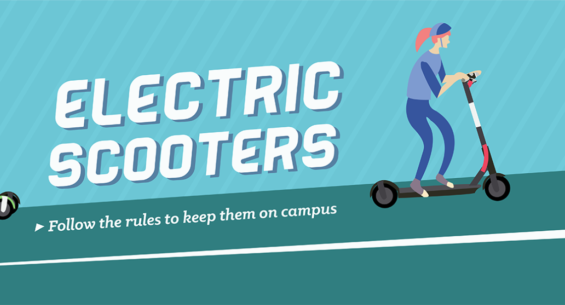 Electric scooters are available for usage by campus visitors, students, staff and faculty. Those who utilize electric scooters must operate them according to campus rules and regulations.